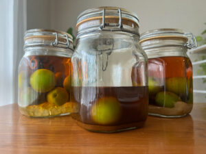 4か月の時間を経て、梅の実を取り出し、小瓶に移し替える季節になりました。