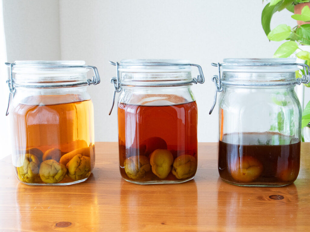 ブランデー梅酒 完成|氷砂糖・きび砂糖・黒砂糖の3種類を比べてみました