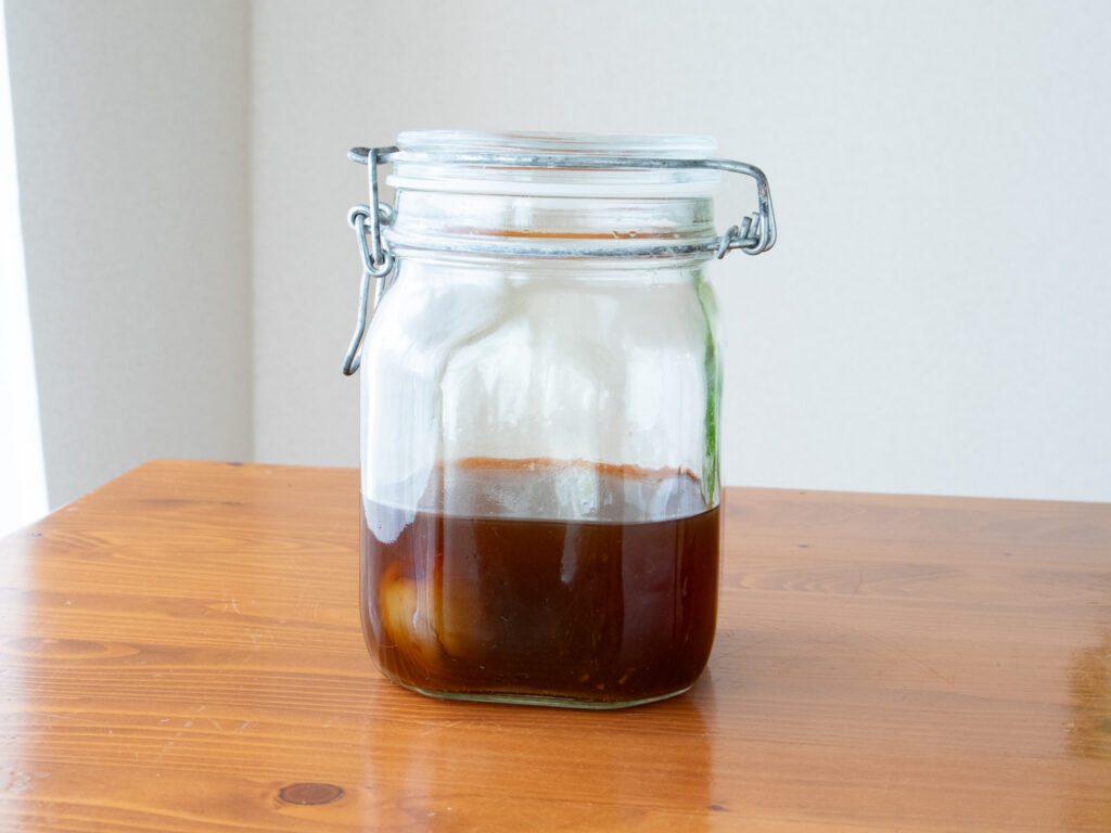 清潔な瓶に移し替えて、冷暗所または冷蔵庫で保存。