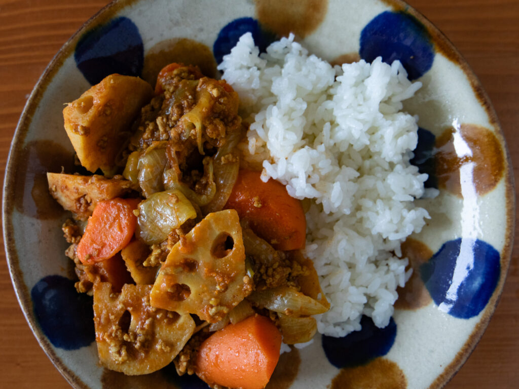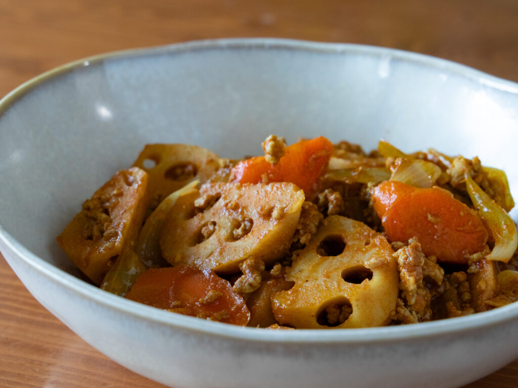 太らない電気圧力鍋レシピ【レンコンと豚ひき肉のカレー煮】
