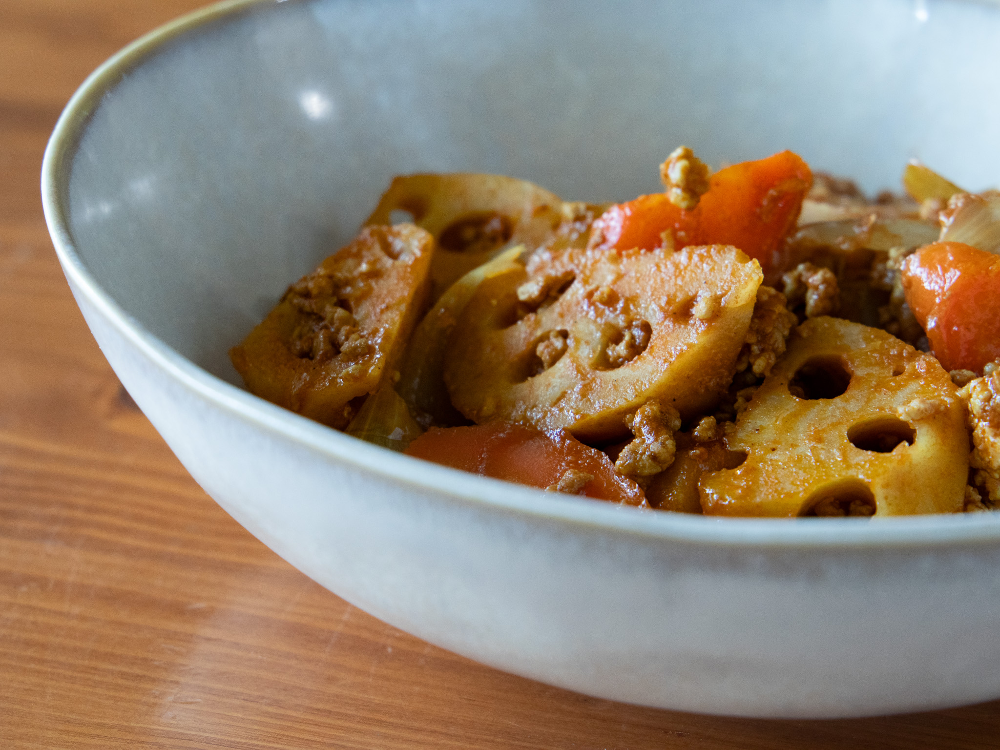 太らない電気圧力鍋レシピ【レンコンと豚ひき肉のカレー煮】