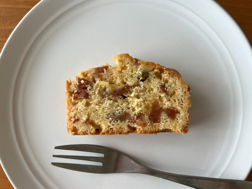 その梅酒で漬けたドライフルーツと梅の実を使って、フルーツパウンドケーキを焼いてみました。