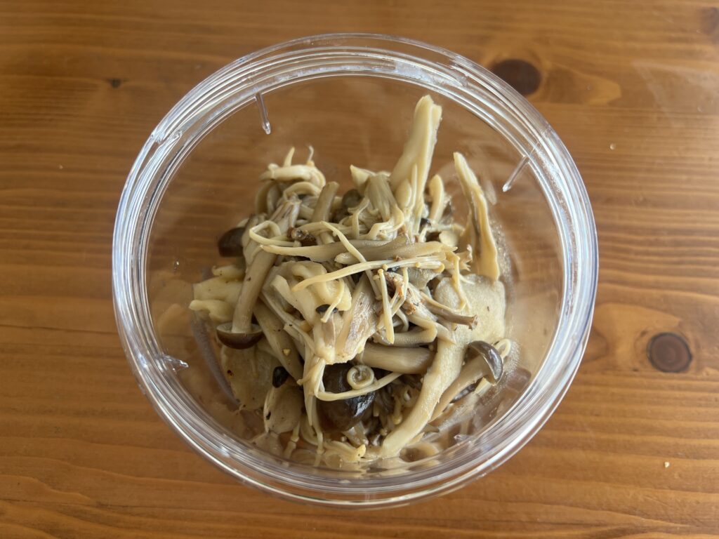 1. 下処理:きのこをほぐして、耐熱ボウルに入れる。