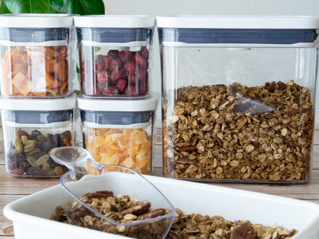 作ったほうじ茶グラノーラは、OXOポップコンテナに保存してみてくださいね。