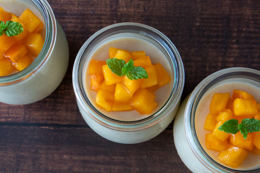 秋の完熟柿をいかした「柿のヨーグルトムース」は、ヨーグルトの酸味となめらかな口どけが心地よいグラスデザート。