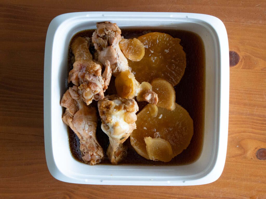 大根と手羽元のやさしい煮物・レンチン小松菜のごま和え・ごはん150gのととのえ献立。