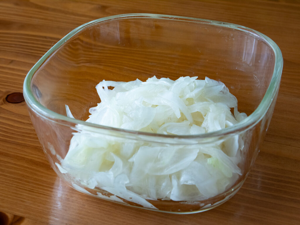 ・新玉ねぎの辛味が気になる場合は塩もみした後に水にサッとつけてから水気をしっかり絞ります。